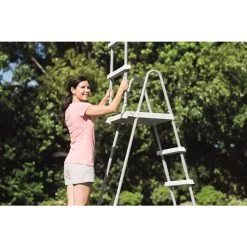 Ce modèle convient pour les piscines hors-sol (autoportées ou tubulaires) ayant une hauteur maximum de 1,22 m. L’échelle peux évidemment servir sur des modèles avec des hauteurs moindres.