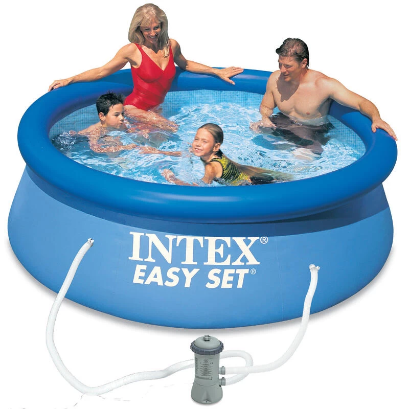 Kit piscine Easy Set 366 x 76 cm. Il suffit de gonfler le boudin et la piscine monte en se remplissant, Inclus : épurateur à cartouche 2m3/h, Capacité : 5,6 m3. Montage en 10 mn