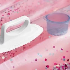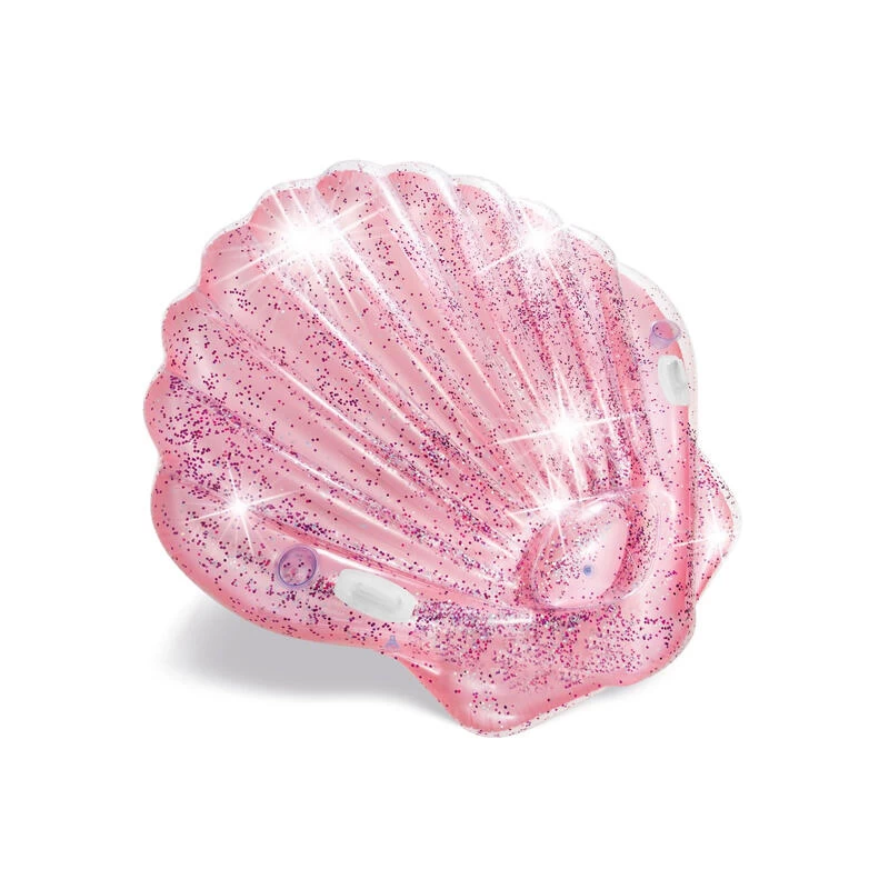 Matelas Ă air en forme d’une coquilleDesign en rose scintillantAvec 2 poignĂ©es solidesCharge maximale jusqu’à 200 kgDimension : 178 x 165 x 24 cmIncluant matĂ©riau de rĂ©parationÂ