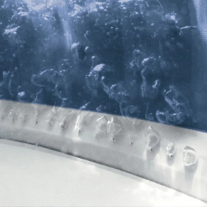 L’air des bulles est chauffée par friction lorsqu’elle fait son chemin du blower (pulseur d’air) jusqu’à l’eau afin de ne pas avoir de sensation de froid.
